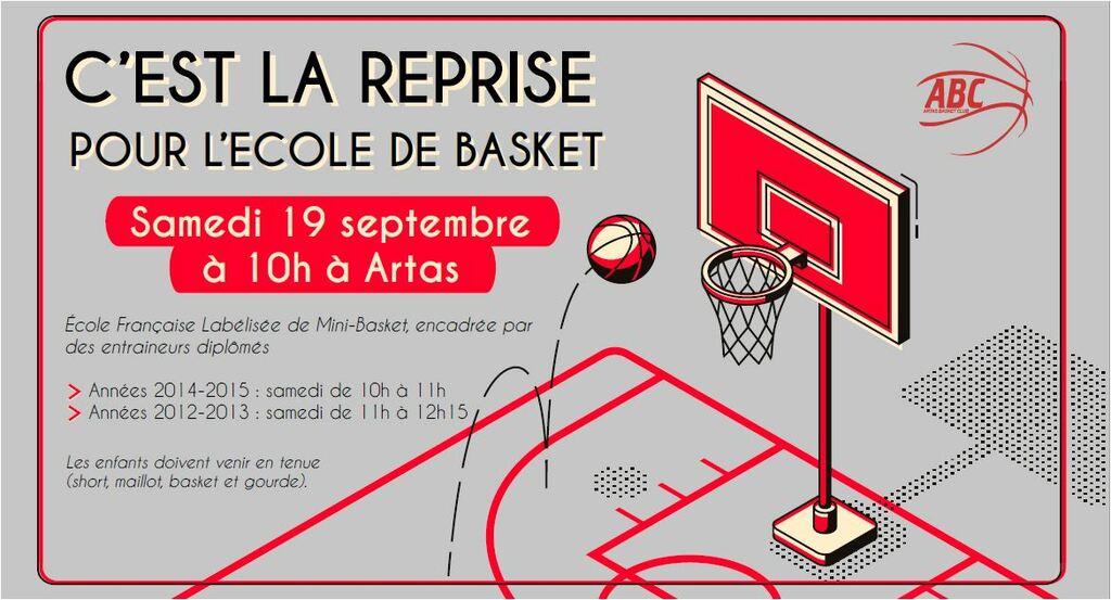 ATTENTION : merci d'arriver en tenue (short, maillot et basket) ainsi qu'une gourde marquée au nom de l'enfant.