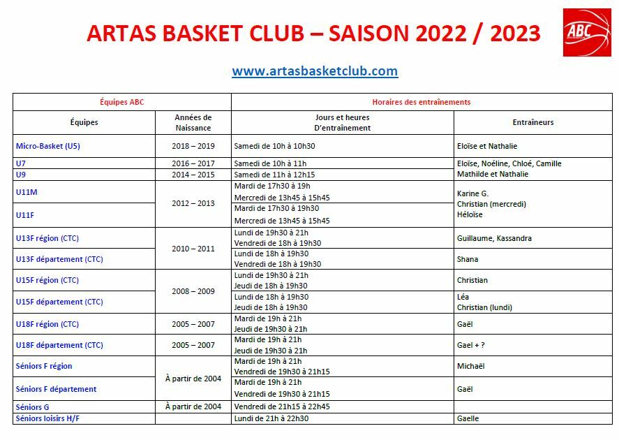 - samedi matin MICRO BASKET / u7 de 10h00 à 10h30 et de 11h00 à 12h15 pour les u9